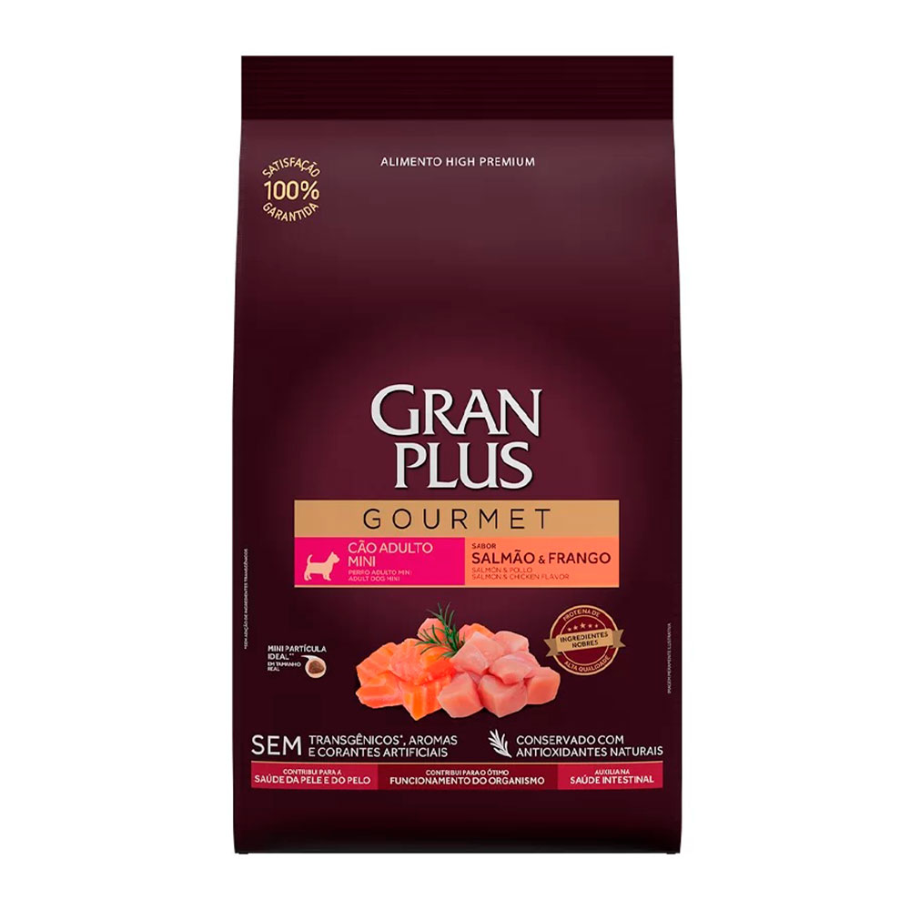 Ração GranPlus Gourmet para Cães Adultos de Porte Mini Salmão e Frango - 10,1kg