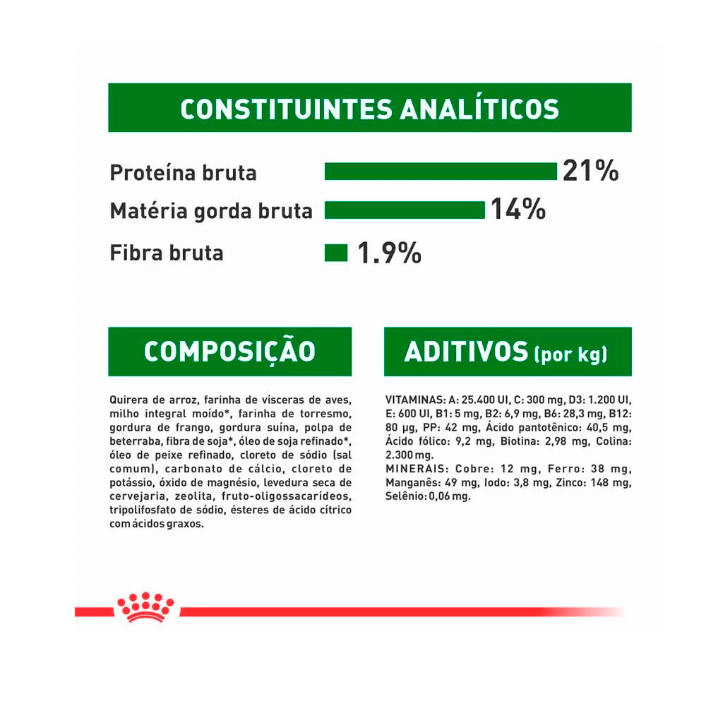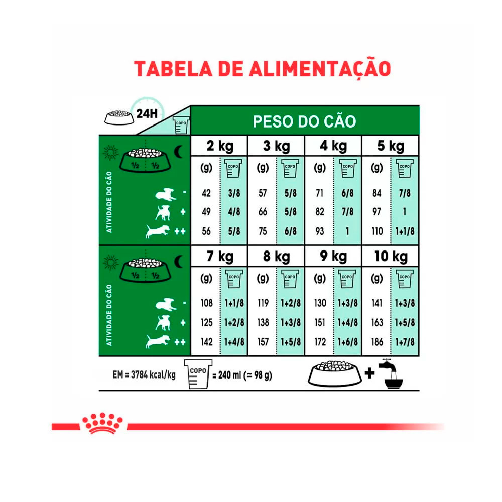 Auxilia na saúde digestiva e na redução do odor e volume das fezes graças a proteínas altamente digestíveis, ao teor apropriado de fibras e as fontes de carboidratos de elevada qualidade. Ajuda na manutenção da condição corporal ideal graças a um adaptado conteúdo calórico, que atende a necessidade energética reduzida de cães de pequeno porte que vivem em ambientes internos.