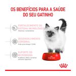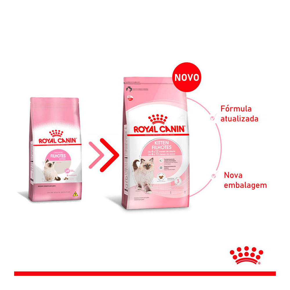 Enriquecida com ácido graxo ômega-3 (DHA) para apoiar o desenvolvimento cerebral e promover uma visão saudável, a Royal Canin Kitten Filhotes tem ingredientes que auxiliam no equilíbrio da flora intestinal, mantendo a saúde digestiva adequada.