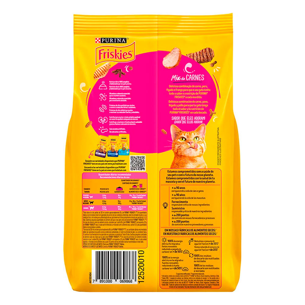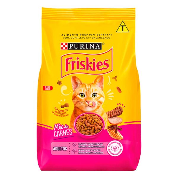 A Ração Friskies Gatos Adultos Mix de Carnes é um alimento completo para gatos adultos. Feito com uma receita gourmet com carne, frango, fígado e peru, balanceado destinado para gatos adultos de atividade normal.