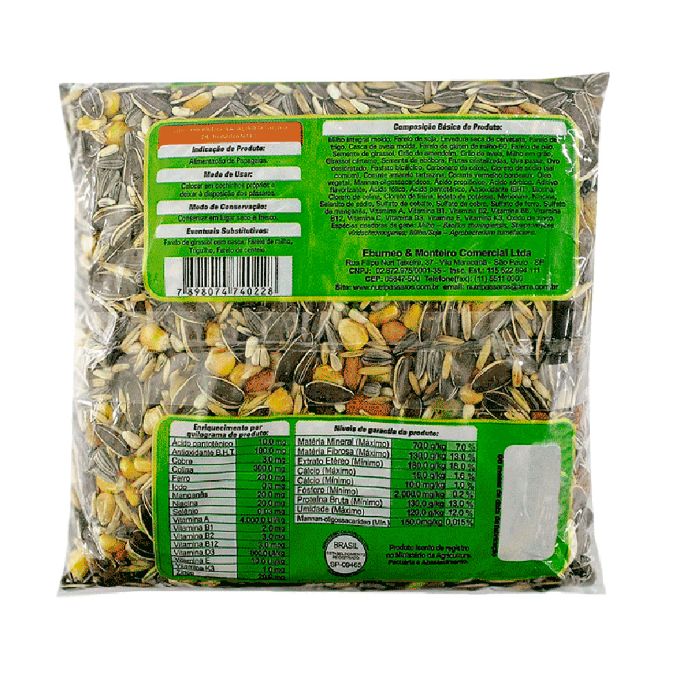 Combina sementes selecionadas, grãos, frutas cristalizadas e desidratadas, além de partículas extrusadas, proporcionando uma nutrição de alta qualidade para seu pássaro.