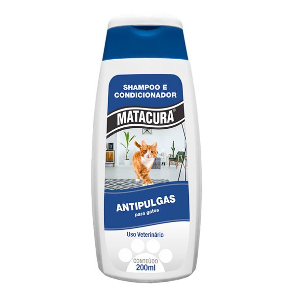 O shampoo e condicionador antipulgas matacura é ideal para gatos, proporciona uma perfeita higiene e condicionamento para os pelos dos gatos, deixando-os macios, brilhosos, volumosos e levemente perfumados. Além disso, combate às pulgas que infestam os gatos.