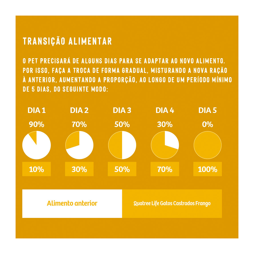 Quatree life não possui ingredientes transgênicos, corantes, aromatizantes e conservantes artificiais (BHT e BHA), possui prebiótico, yucca e zeólita promovem a saúde intestinal e contribuem para fezes mais firmes com odor e volume reduzidos.