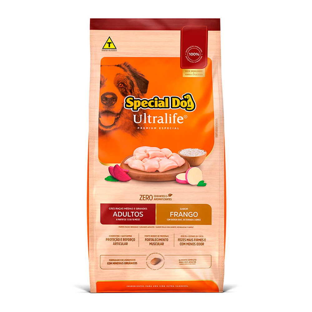 A Ração Special Dog Ultralife Para Cães Adultos é ideal para os cães com o paladar exigente. Fortalece o sistema imunológico, combinação de ômegas + zinco orgânico para deixar a pele protegida e os pelos ainda mais brilhantes.