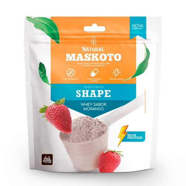 O Snack Maskoto Shape Whey Protein Sabor Morango é um petisco super premium funcional desenvolvido para cães adultos de todos os portes.