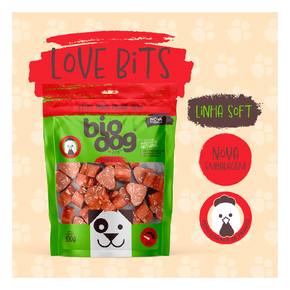 O Petisco Love Bits Bio Dog vai conquistar seu melhor amigo. Um biscoito rico em proteínas sem conservantes e aromatizantes, ele é feito com puro filé de peito de frango, o que faz dele um petisco macio e muito saboroso.