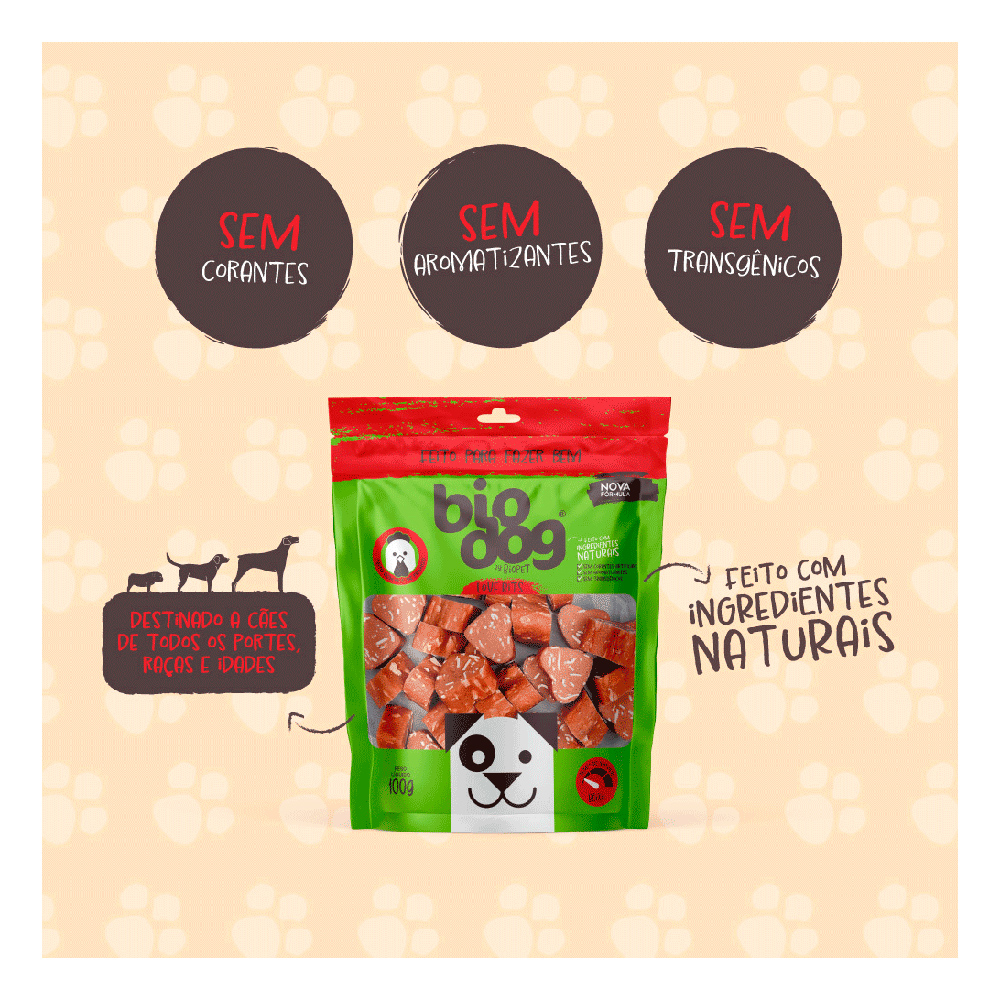 Indicado para cães de todos os portes e idades, sendo rico em proteínas, com baixa caloria e livre de conservantes artificiais. O formato em coração e a textura macia tornam-no ideal para agradar ou recompensar seu cãozinho.