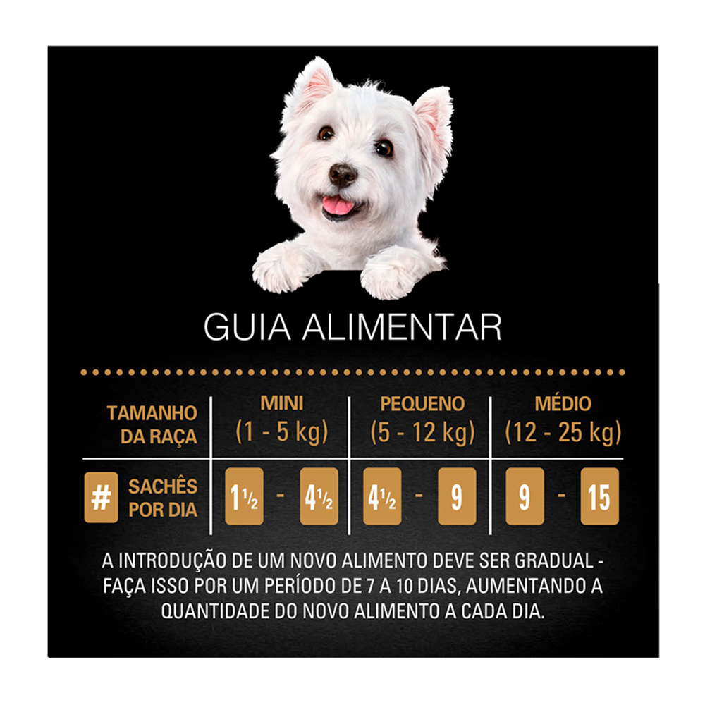 Para cães de 1kg a 5 kg: 1½ – 4½ sachês/dia;