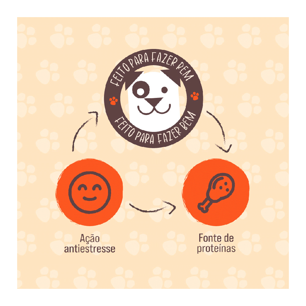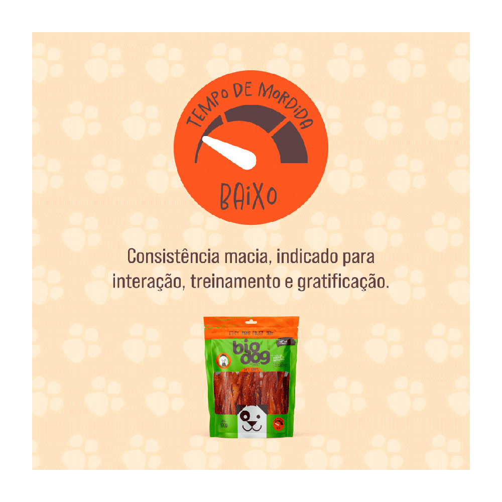 Indicado para cães de todos os portes e idades, sendo rico em proteínas, com baixa caloria. Elaborado com peito de frango desidratado, é 100% natural, livre de conservantes, corantes e transgênicos. Sua textura macia estimula a mastigação, sendo ideal para recompensas durante treinamentos ou como um agrado especial.