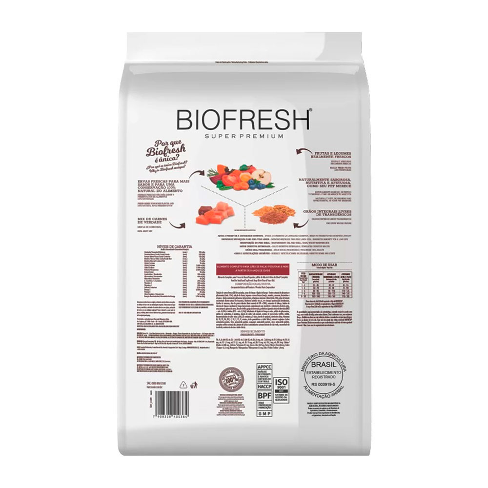 Ração Biofresh Para Cães Sênior Raças Pequenas e Mini Mix de Carne, Frutas, Legumes 10,1kg
