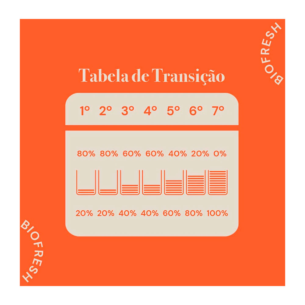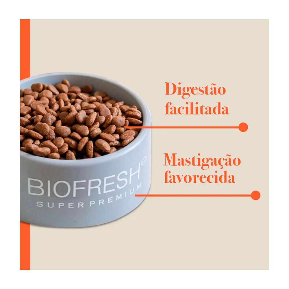 Biofresh Super Premium Sênior ajuda a preservar características muito importantes da juventude tais como a musculatura forte, a agilidade mental e a saúde dos sistemas digestivo, renal e cardíaco. A tecnologia Biofresh garante a preservação deste alimento de forma segura e 100% natural, sem adição de conservantes artificiais.