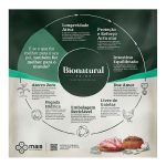 Ração Bionatural Adultos Sênior possui condroitina e glucosamina, que são essenciais para o reforço e proteção articular, promovem uma articulação saudável e maior mobilidade para raças pequenas. Enriquecida com prebióticos e probióticos, que ajudam a manter a flora intestinal saudável.