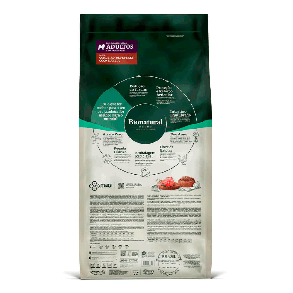 Ração Bionatural Prime Para Cães Adultos Raças Pequenas Sabor Cordeiro 2,5kg