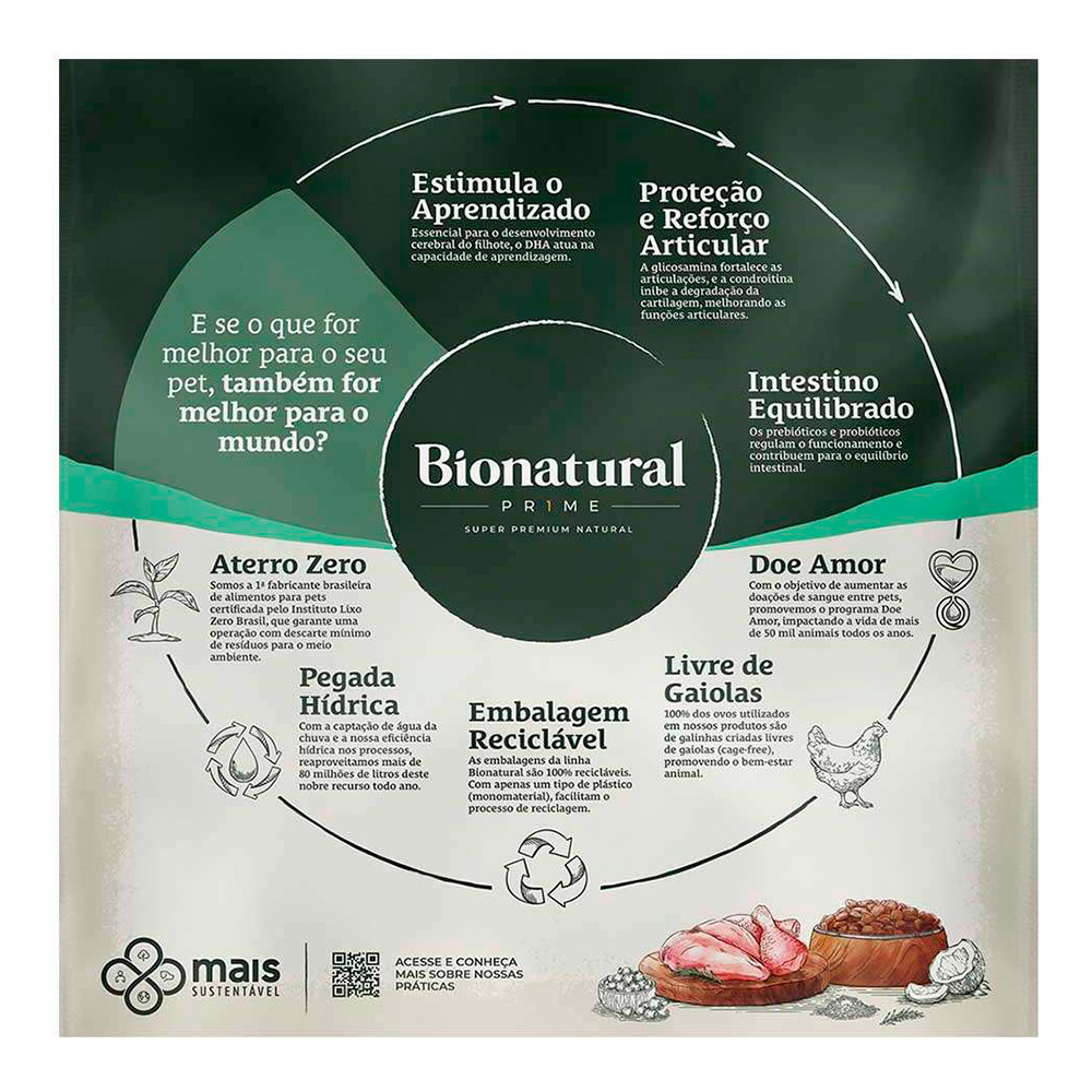 Ração Bionatural Filhotes possui condroitina e glucosamina, que são essenciais para o reforço e proteção articular, promovem uma articulação saudável e maior mobilidade para raças pequenas. Enriquecida com prebióticos e probióticos, que ajudam a manter a flora intestinal saudável.