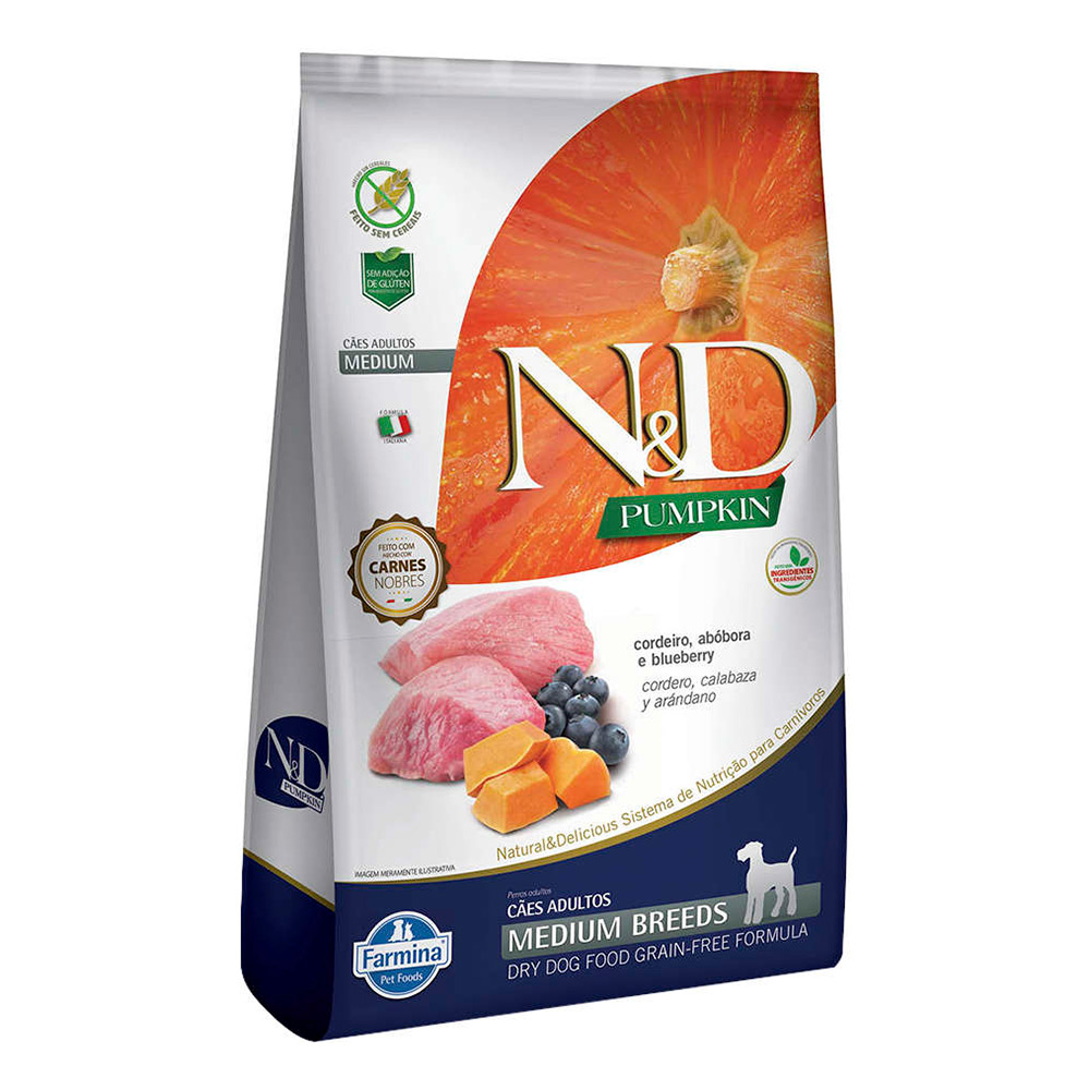 Ração Farmina N&D Pumpkin Para Cães Adultos Raças Médias Sabor Cordeiro, Abóbora e Blueberry – 2,5kg