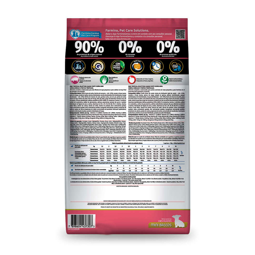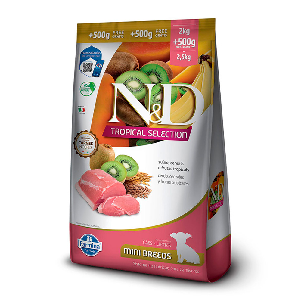 A Ração N&D Tropical Selection Cães Filhotes Mini Suíno é ideal para os cães em fase de crescimento e para cadelas no terço final da gestação e em lactação, fornece todo o aporte necessário de nutrientes.