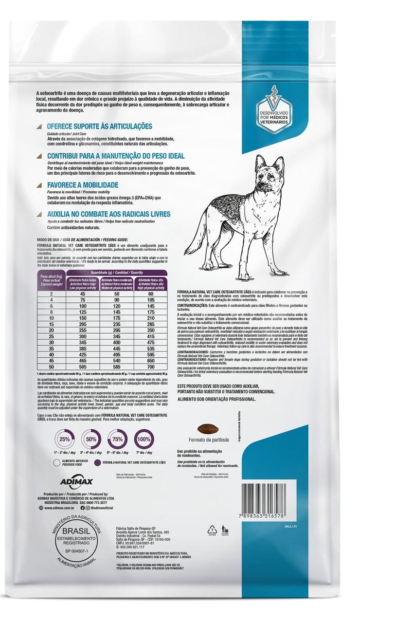 A Ração Fórmula Natural Vet Care Osteoartrite é um alimento coadjuvante especialmente desenvolvida para cãezinhos que sofrem de Osteoartrite.