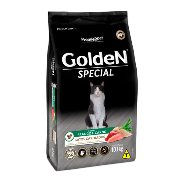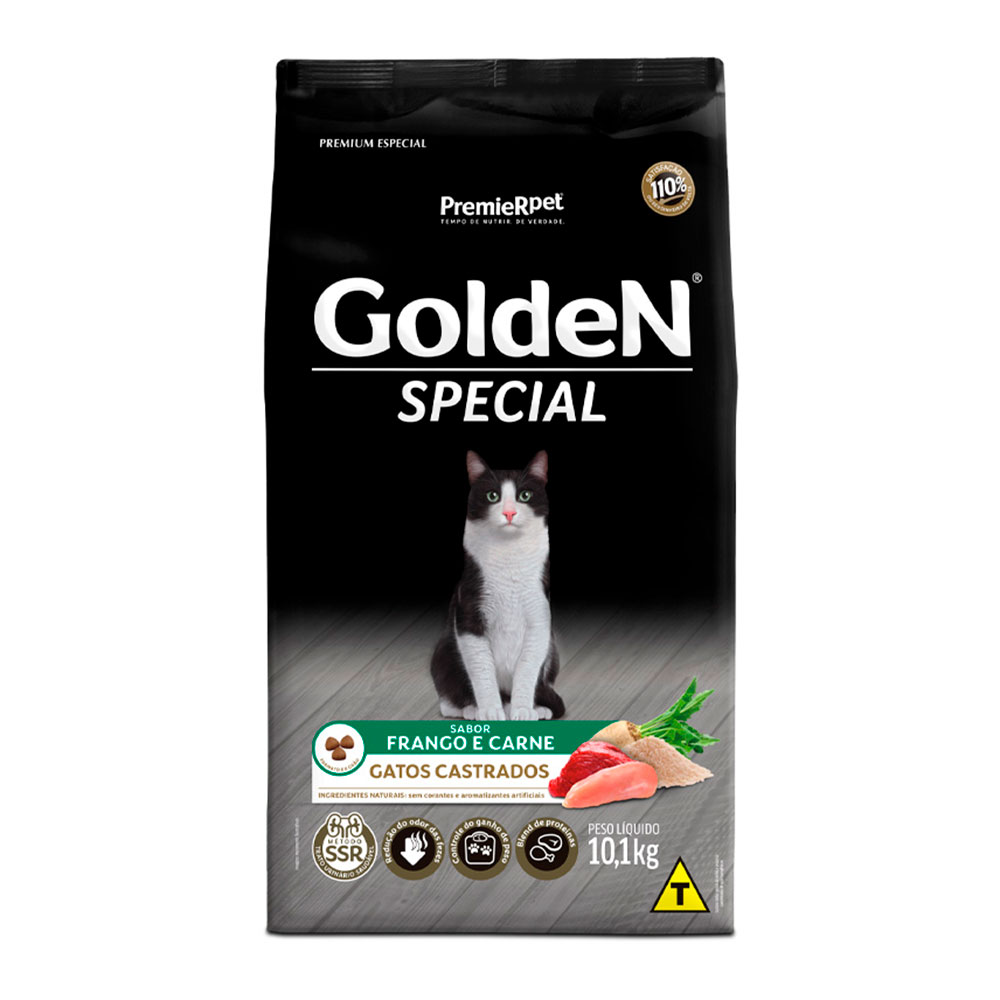 Ração Golden Special Gatos Adultos Castrados Frango e Carne Leve 10,1kg Pague 9,1kg