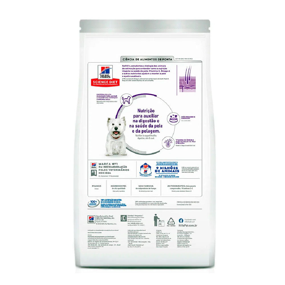Ração Hill’s é um alimento feito com ingredientes selecionados para atender as necessidades especiais de cães adultos saudáveis acima de 1 ano de idade, com pele sensível que preferem pedaços pequenos.