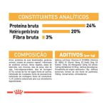 Quirera de arroz, farinha de vísceras de aves, gordura de frango, fibra de soja*, gordura suína, polpa de beterraba, farinha de torresmo, glúten de trigo, óleo de peixe refinado, óleo de soja refinado*, óleo de borragem (0,1%), cloreto de potássio, carbonato de cálcio, cloreto de sódio (sal comum), óxido de magnésio, hidrocloreto de glicosamina, sulfato de condroitina, tripolifosfato de sódio, sorbato de potássio,fruto-oligossacarídeos, extrato de marigold, extrato de chá verde, zeolita, vitaminas (A, C, D3, E, B1, B2, B6, B12, PP), ácido pantotênico, biotina, ácido fólico, cloreto de colina, sulfato de ferro, sulfato de cobre, óxido de zinco, óxido de manganês, iodato de cálcio, levedura enriquecida com selênio, zinco aminoácido quelato, manganês aminoácido quelato, cobre aminoácido quelato, tirosina, DL-metionina, taurina, L-carnitina, palatabilizante à base de fígado de frango, antioxidante (BHA).