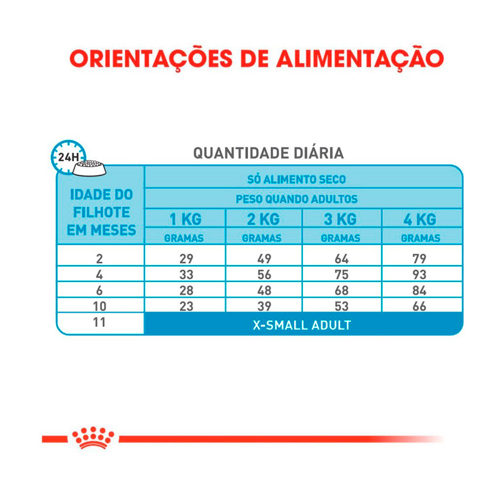 A Ração Royal Canin X-Small Cães Filhotes é uma ração completa super premium indicada para cães filhotes de raças miniatura (peso até 4 kg quando adultos).