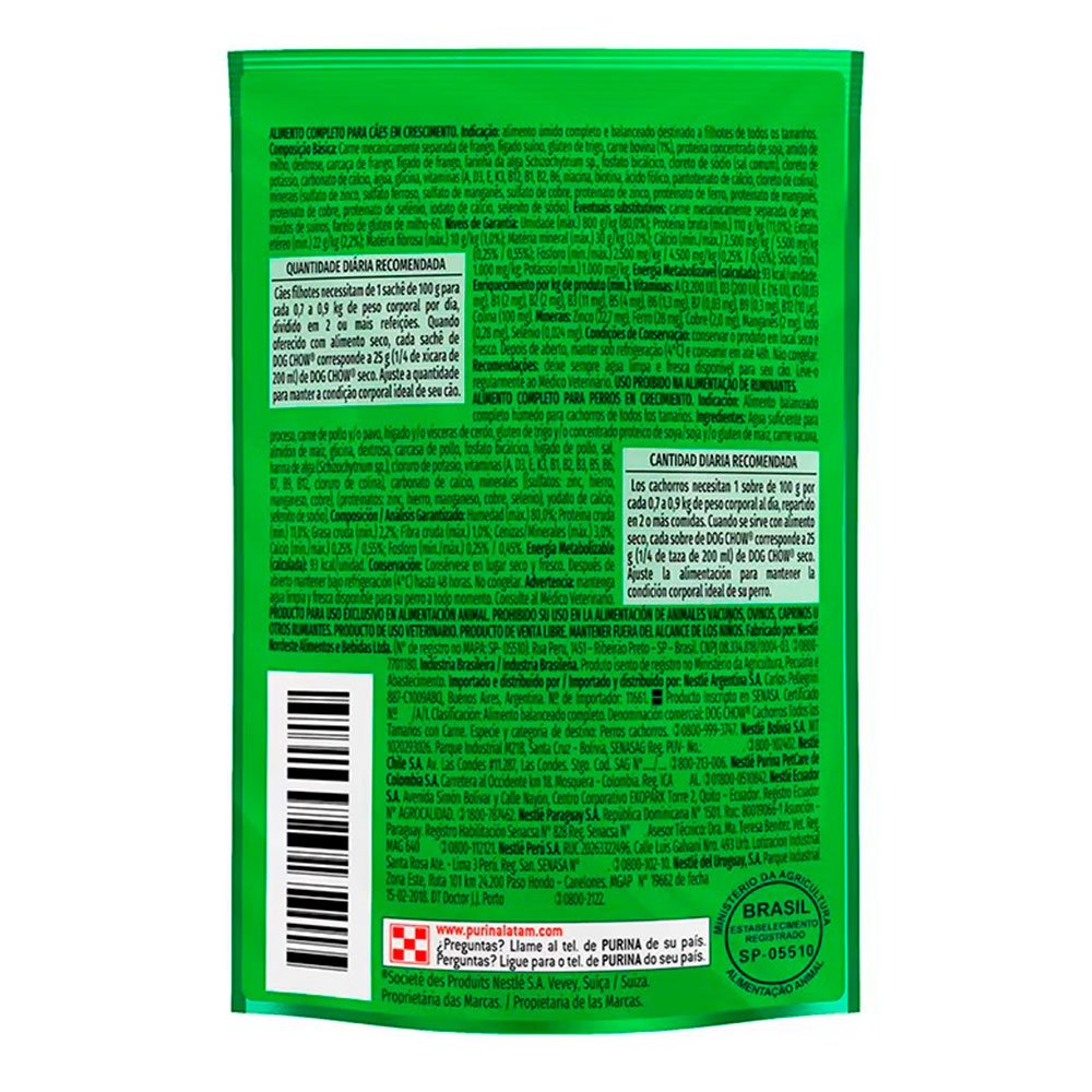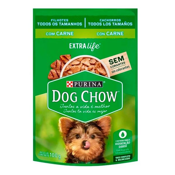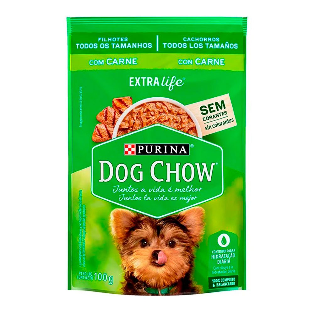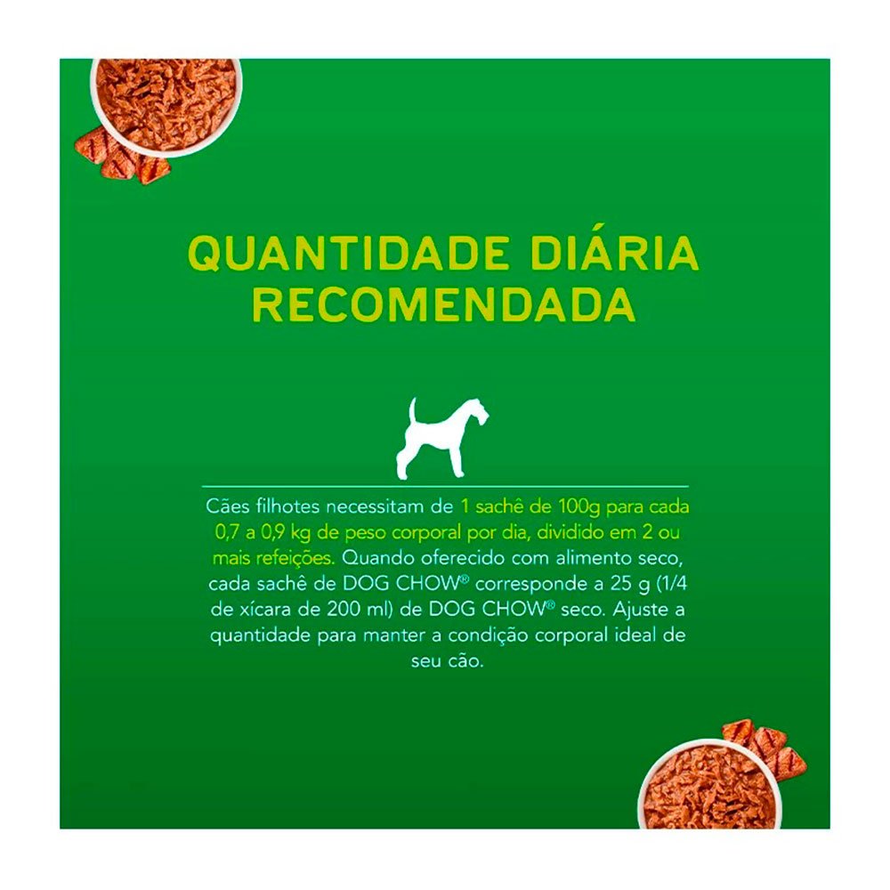 Ração Úmida Dog Chow Cães Filhotes Carne é prática e pronta para servir. Cada sachê contém uma deliciosa refeição, 100% completa e balanceada.
