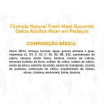 A Ração Úmida Fórmula Natural Fresh Meat Gourmet Gatos Adultos Atum em Pedaços é um alimento de alta qualidade, elaborado com carne de atum genuína em pedaços. Além disso contém linhaça e tomate. Com sabor delicioso que agrada aos paladares mais exigentes e seletivos, foi formulado para atender todas as necessidades nutricionais do seu gato.