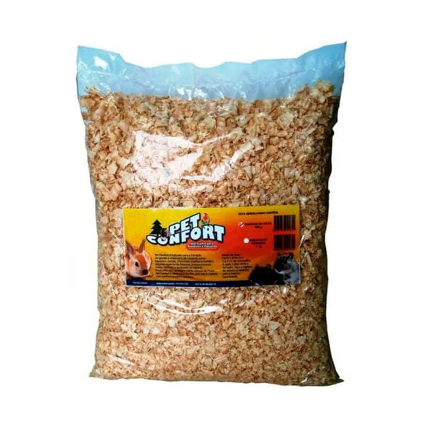 Serragem de palha de madeira de pinus, sem agrotóxicos e substâncias químicas, evita odores, absorve a umidade, com qualidade e higiene. Muito mais conforto e higiene para o seu roedor.