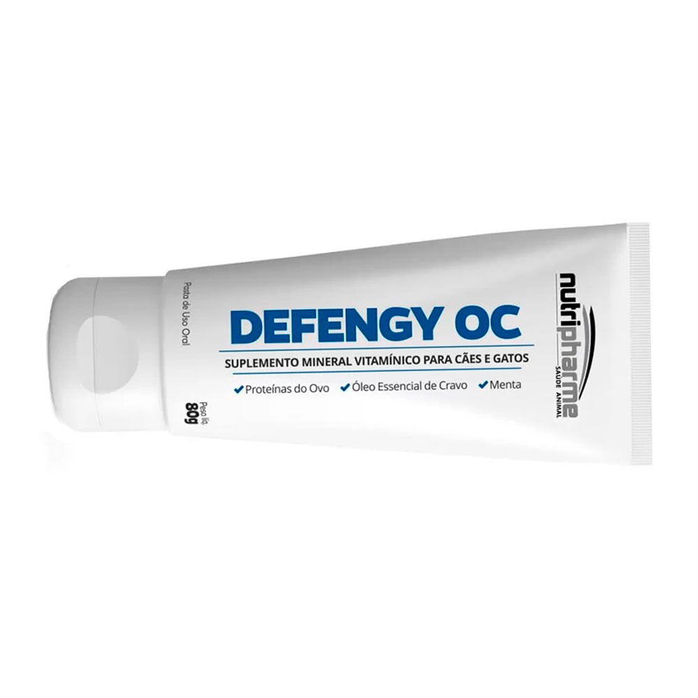 O Suplemento Mineral Nutripharme Defengy OC é eficiente na manutenção da saúde oral para cães e gatos, contribuindo para redução do mau hálito e na formação de placa bacteriana, inativa a bactéria do Tártaro.